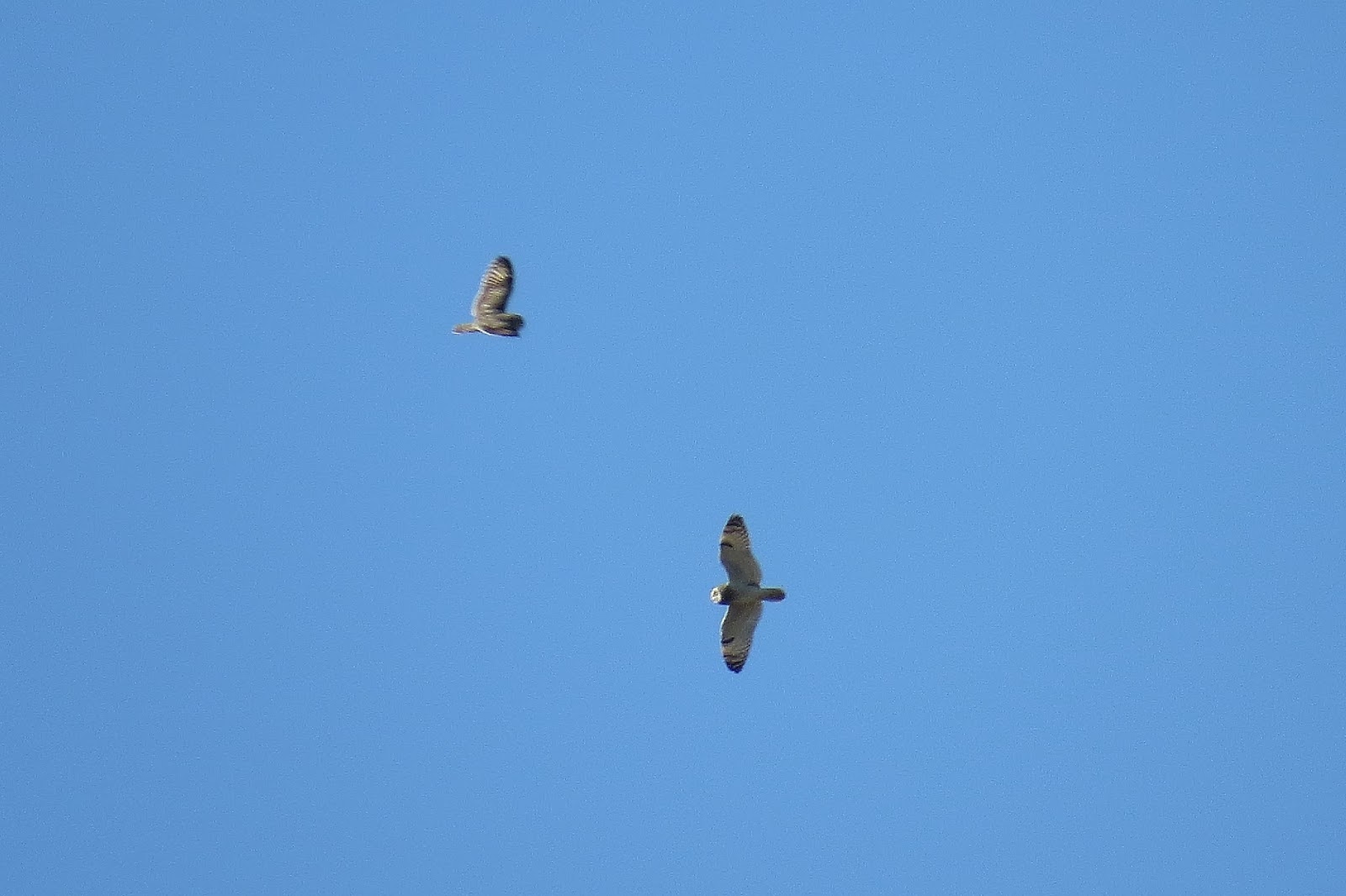 And before long there were three Short-eared Owls who took a considerable height and left in a southeast direction.