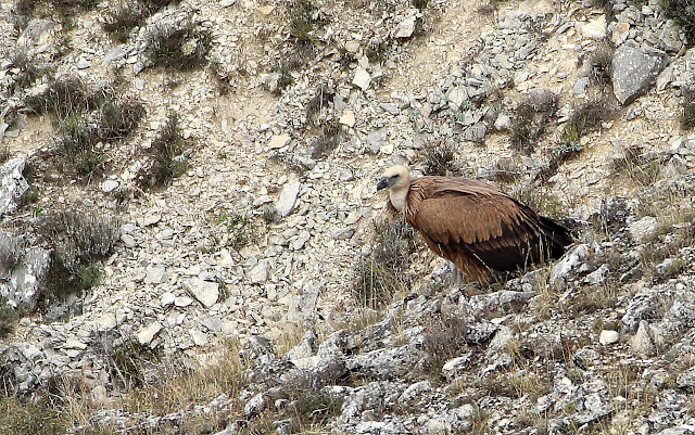 Although weather forecasts was good for observing a good going out of Vultures from the Canyon the weather was not as sunny as predicted and as there was no wind their taking off was delayed very much what made us to arrived to the Canyon later than expected. Anyway the few vultures who left allowed us to take some nice pictures and we enjoy seen them passing below our position.