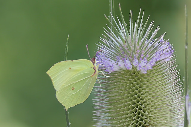 This moth was new to me and I found it very pretty. It is a Broad-bordered Bee Hawk-moth.