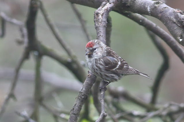 Yo no estuve muy atento a los parámetros de mi teleobjetivo y había puesto, sin darme cuenta, el enfoque a partir de 8,5 metros con lo que gran parte de las fotos que tomé salieron desenfocadas pues, algunas aves, estaban más cerca de esa distancia. En esta foto un pardillo norteño (Acanthis flammea).
